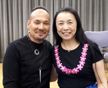 老人ホームのボランティアで、フラや歌や手あそび等、活動中